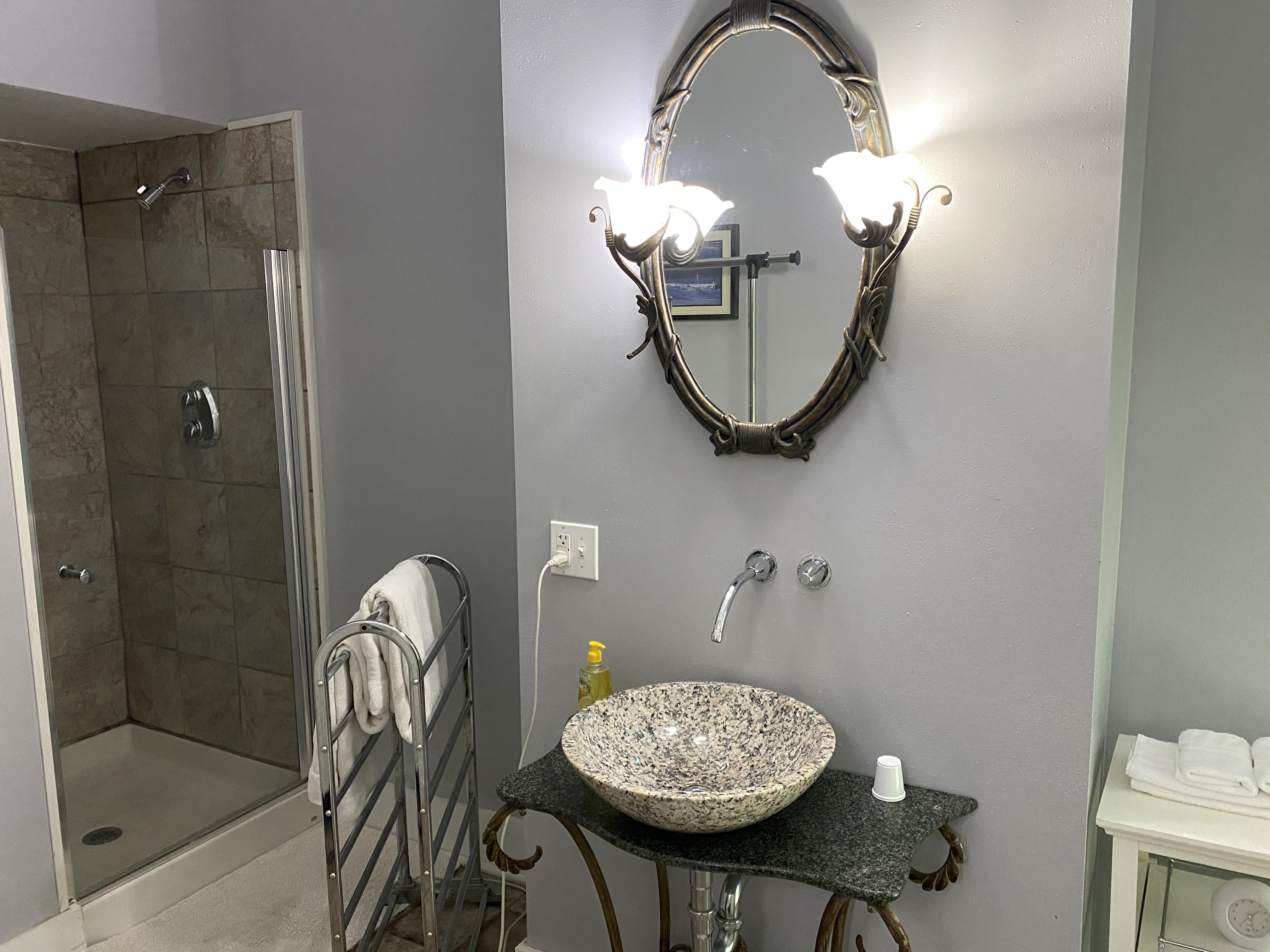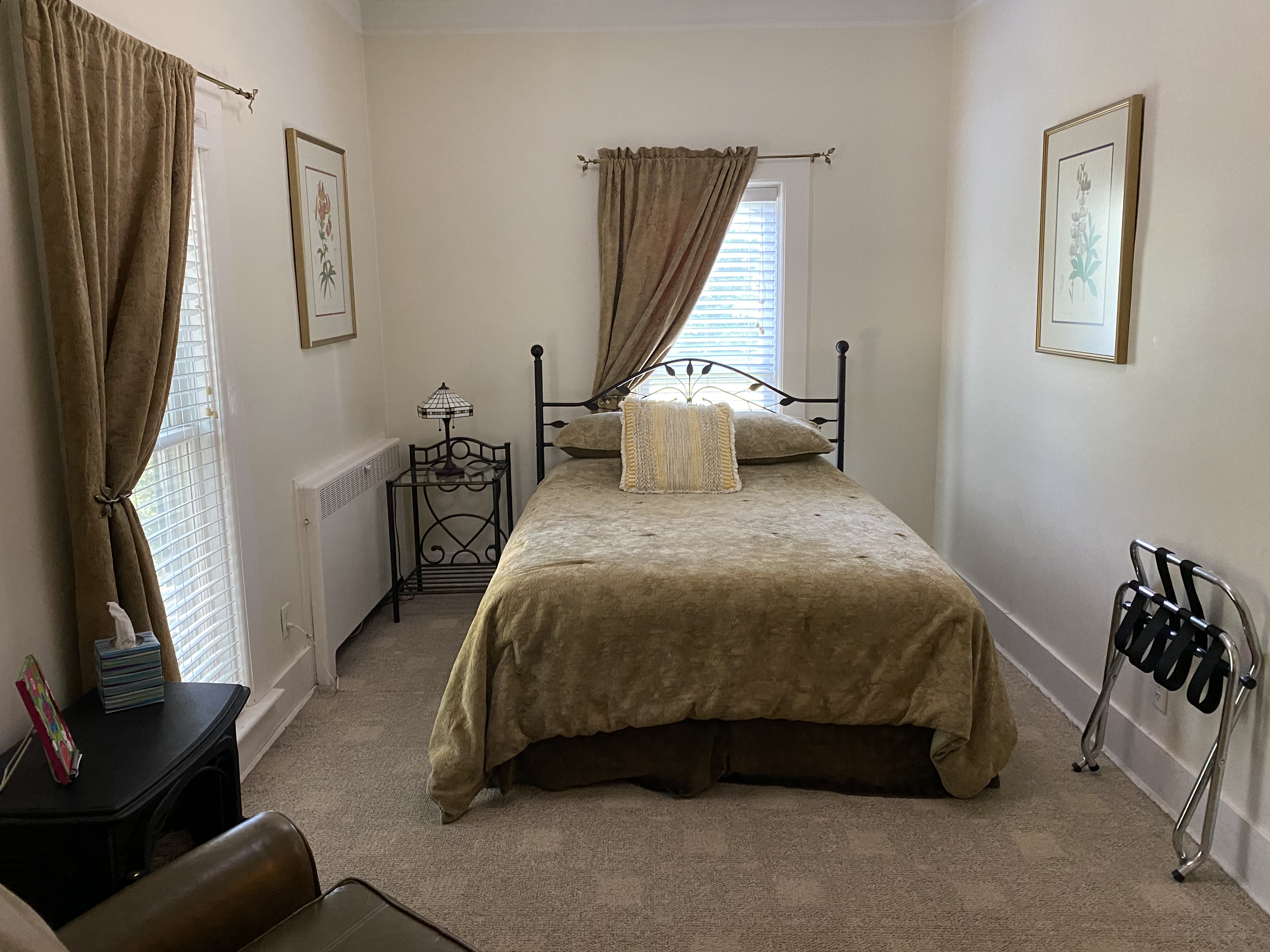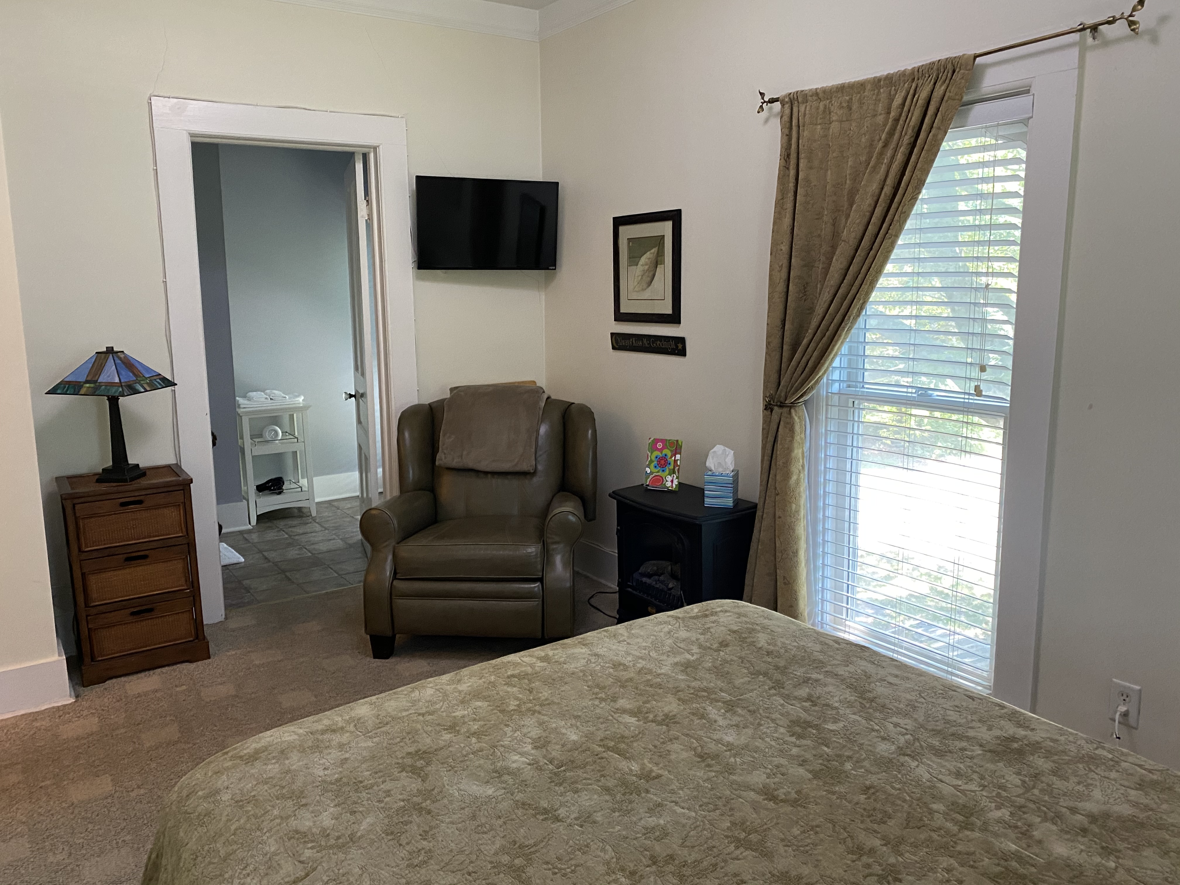 Sleep in the woods while in an artist made iron bed, whose headboard and footboard represent the branches of a beautiful tree. Relax in the leather wingback while talking a quiet moment reading a book or enjoying the warmth of the fireplace.